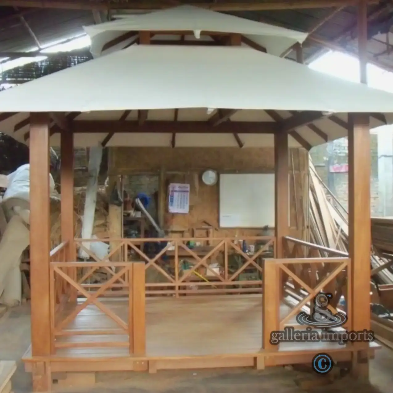 Gazebo Bengkirai Wood With Japanese Canvas Roof 3x3 Meters