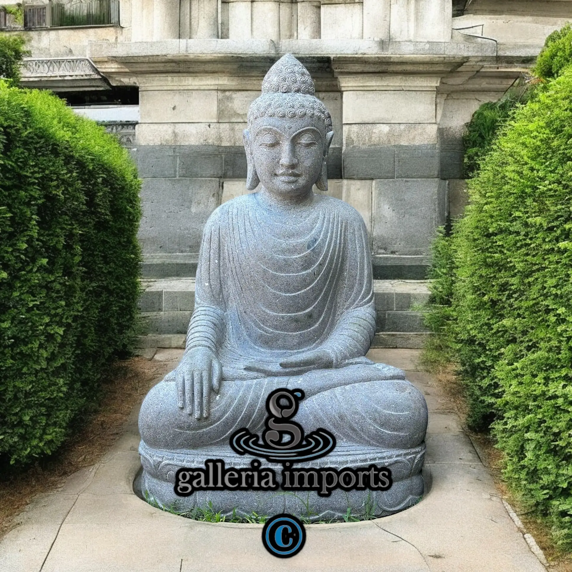 Sitting Buddha Vulcanic Stone 95cm | 37" H